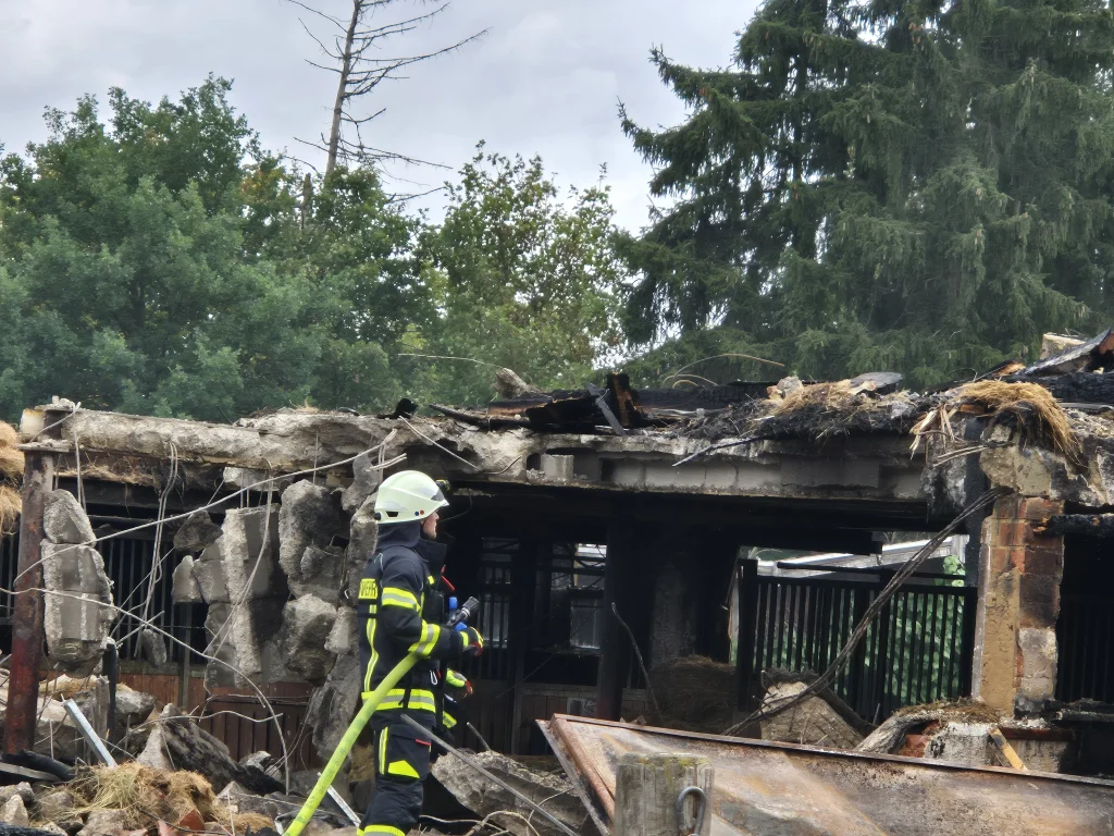 Gegen 14 Uhr konnte in den Überresten der Scheune und des weiteren Gebäudekomplexes keine große Brandgefahr vernommen werden, weshalb der Einsatz für uns ein Ende nahm.