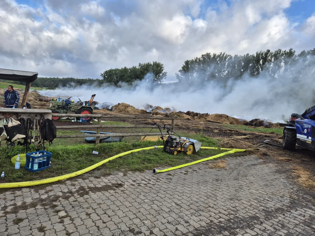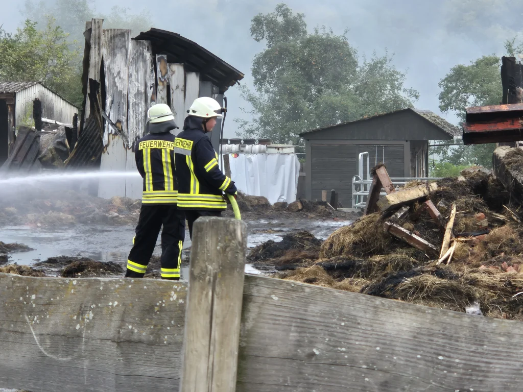 Durch die hohe Menge an Strohballen, die in der betroffenen Scheune gelagert wurden, entstanden viele vereinzelte Glutnester, welche in kürzester Zeit wieder Feuer fingen. Durch schweres Gerät des Technischen Hilfswerkes und eines zivilen Bauunternehmers wurde die Scheune nach und nach abgerissen, die Heuballen zerkleinert und Glutnester gelöscht.