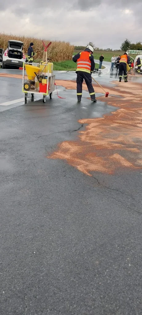 Am Dienstagmorgen wurden wir zu auslaufenden Betriebsstoffen in Folge eines Verkehrsunfalls auf der K499 bei Hofen alarmiert. Zusammen mit den Kammeraden der Freiwilligen Feuerwehr Hofen + Eschenau streuten wir die ausgelaufenen Stoffe mit Ölbindemittel ab und entsorgten sie fachgerecht.
