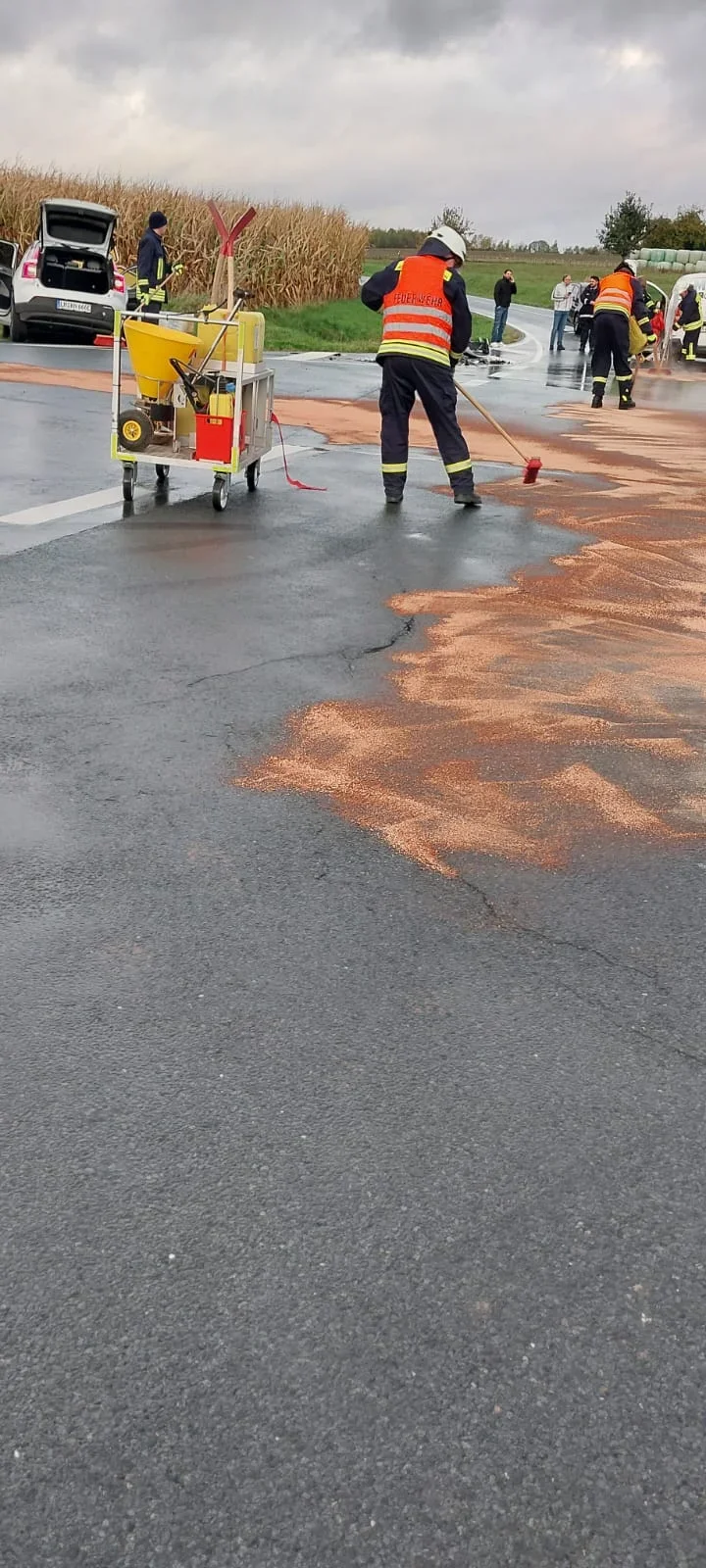 Am Dienstagmorgen wurden wir zu auslaufenden Betriebsstoffen in Folge eines Verkehrsunfalls auf der K499 bei Hofen alarmiert. Zusammen mit den Kammeraden der Freiwilligen Feuerwehr Hofen + Eschenau streuten wir die ausgelaufenen Stoffe mit Ölbindemittel ab und entsorgten sie fachgerecht.