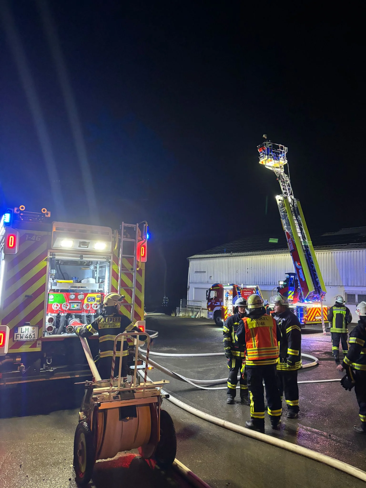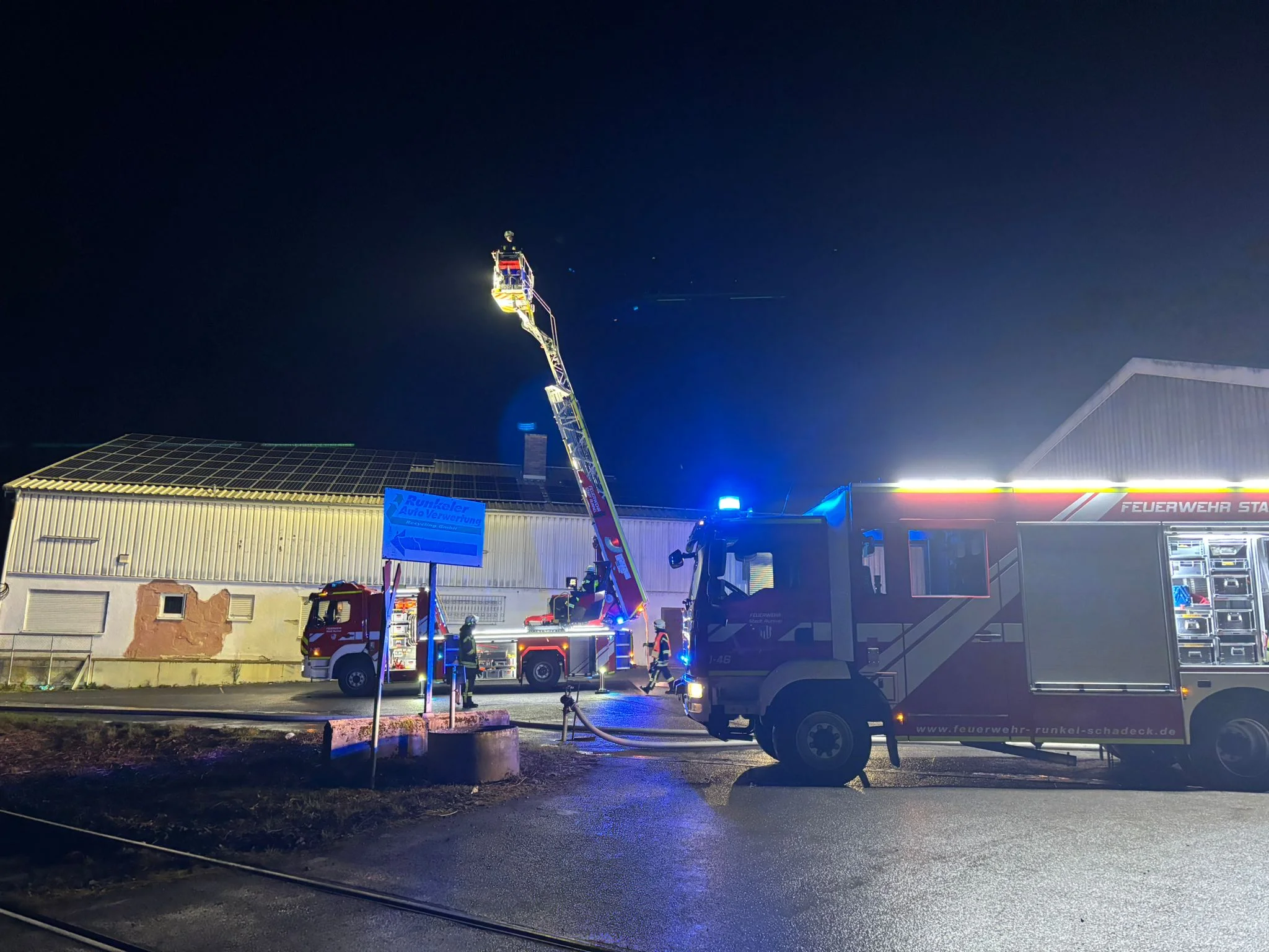 Die Einsatzstelle wurde ausgeleuchtet und das Dach mit der Drehleiter abgelöscht.